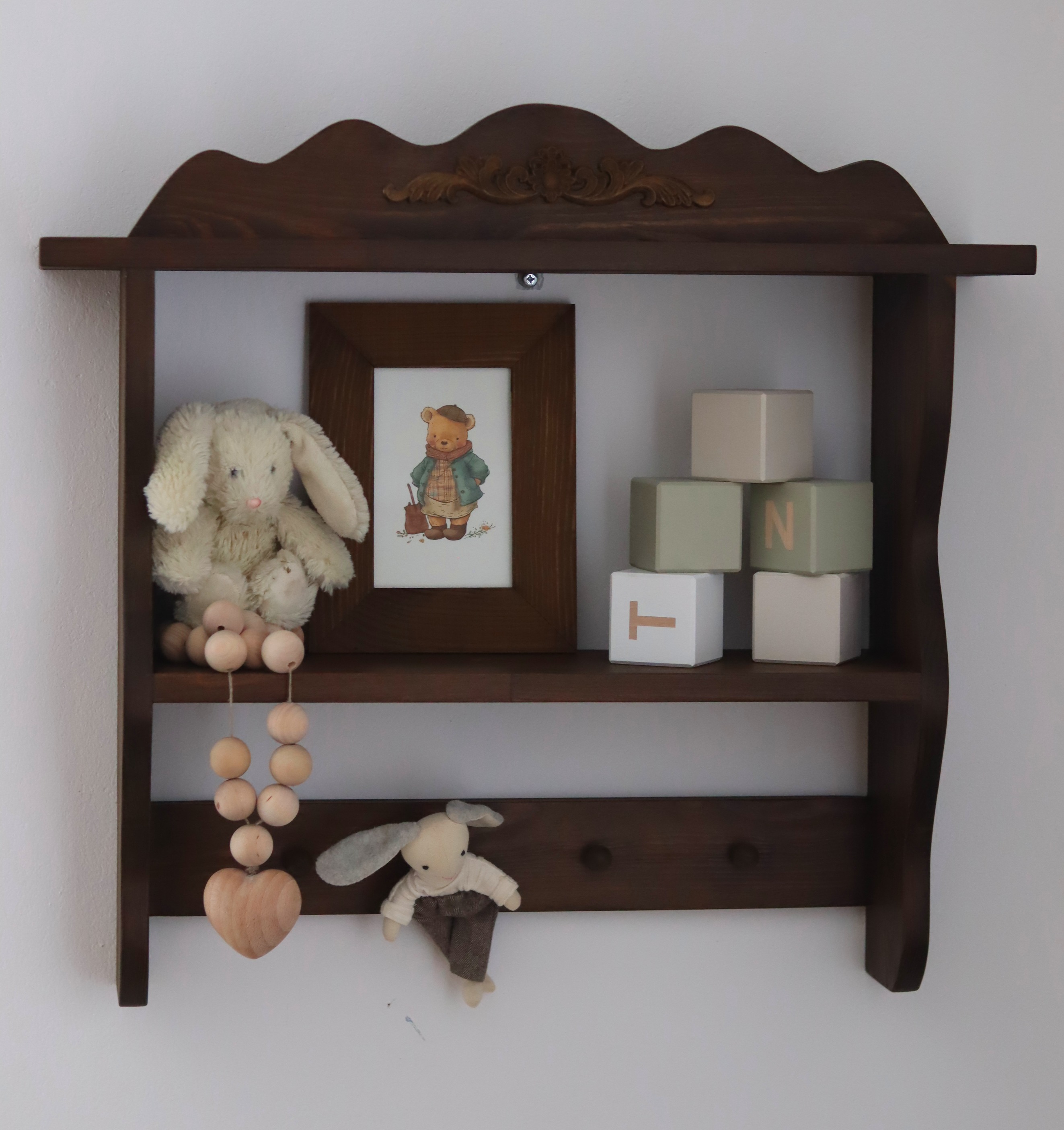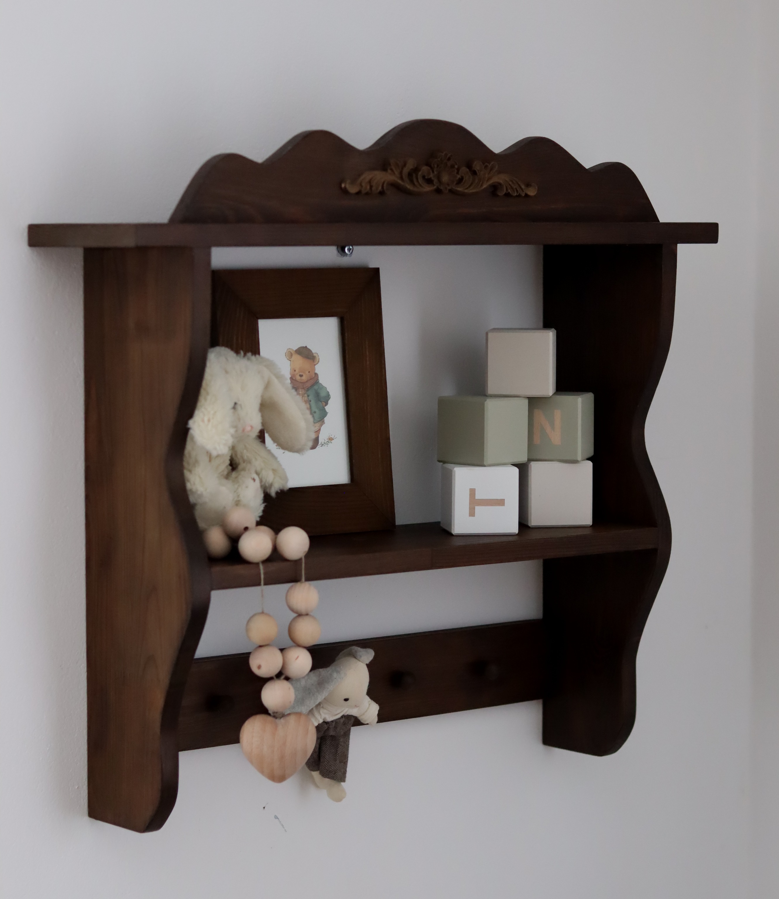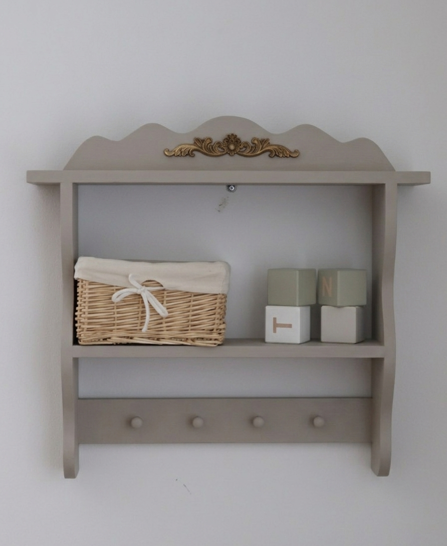 Nasza półka ścienna to nie tylko mebel, to dekoracja, która nadaje wnętrzu duszę. Wykonana z dbałością o każdy detal, posiada subtelne frezowania i ozdobny ornament, który idealnie komponuje się z wnętrzami w stylu retro, boho czy klasycznym.